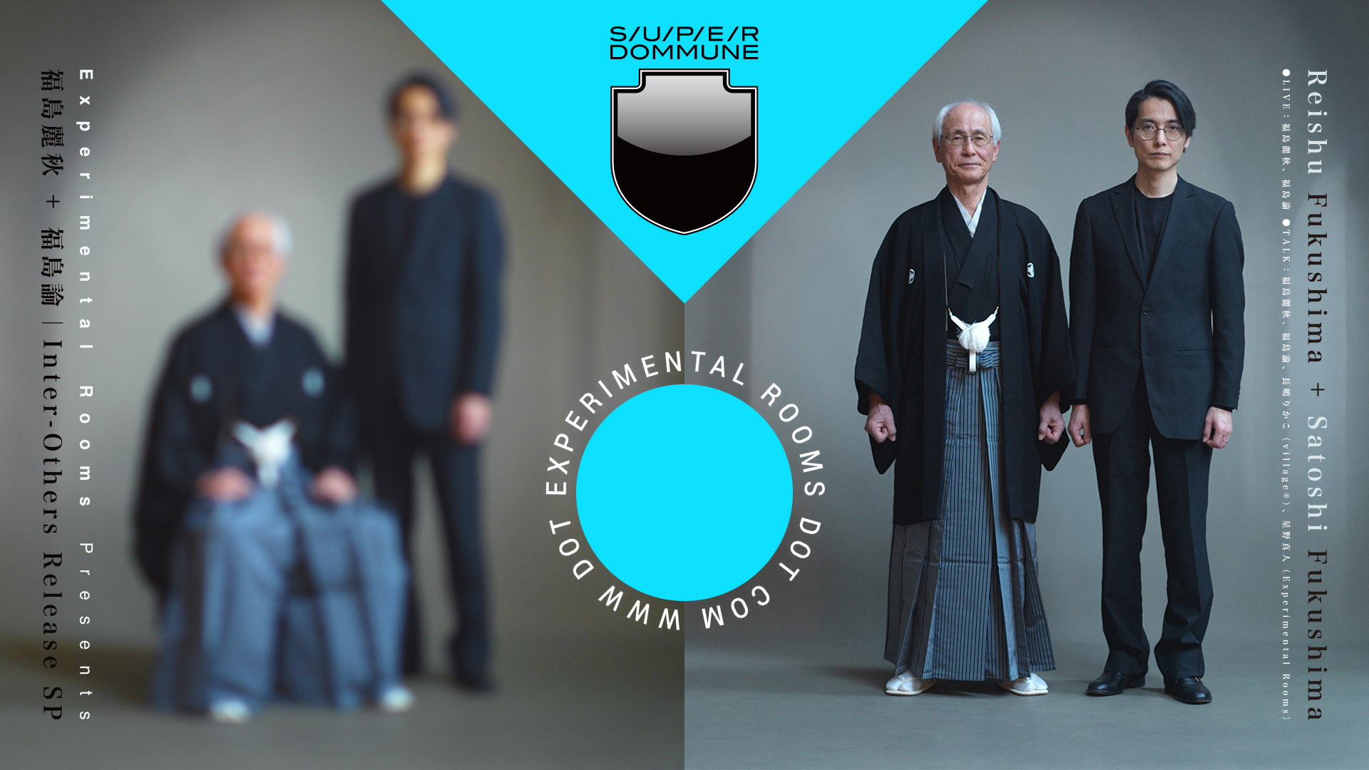 数学的・図形的な作曲法を用いつつコンピュータ処理を通して奏者の発した音をリアルタイムに変形/構築を瞬時に重ねていき、未だ見ぬ電子音響の可能性を拡張させてみせる作曲家・音楽家で息子の福島諭。 1990年代後半に佐渡の地で村松流尺八との出会いをきっかけに尺八道を歩み進め、2013年より息子の諭との演奏・即興を始めた尺八奏者で父親の福島麗秋。この父子からなるユニットの、10年にも及ぶ福島親子の記録をまさにアルバムとしてコンパイル・昇華させてみせたLPレコード作品『Inter-Others』がめでたく本年5月にリリースされた。過去と現在、身体と機械、分解と構築、間と動作、作曲と即興…相反するふたつの事象や現象を行き交いつつ、美しいグラデーションをも脳裏に想起させる新たなる電子音響作品がここに誕生した。今作の出版を記念し、この度DOMMUNEでの特別番組が大決定。スペシャル・ゲストには本作にライナー級の素晴らしいコメントをご寄稿頂いたグラフィック・デザイナーの長嶋りかこも登壇。親子の軌跡を辿りつつ作品を深掘るトーク、関連映像、そして親子生ライヴの2時間をお届けします!!